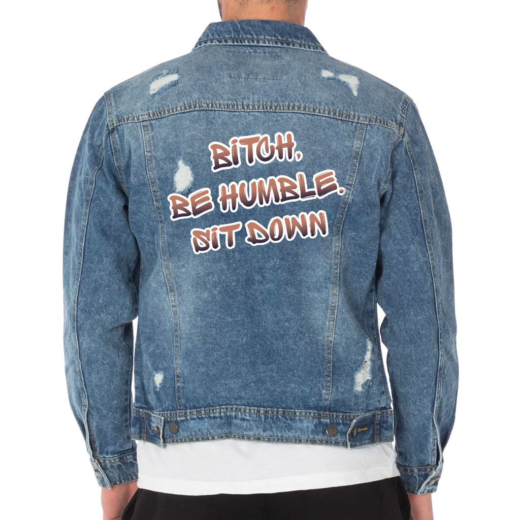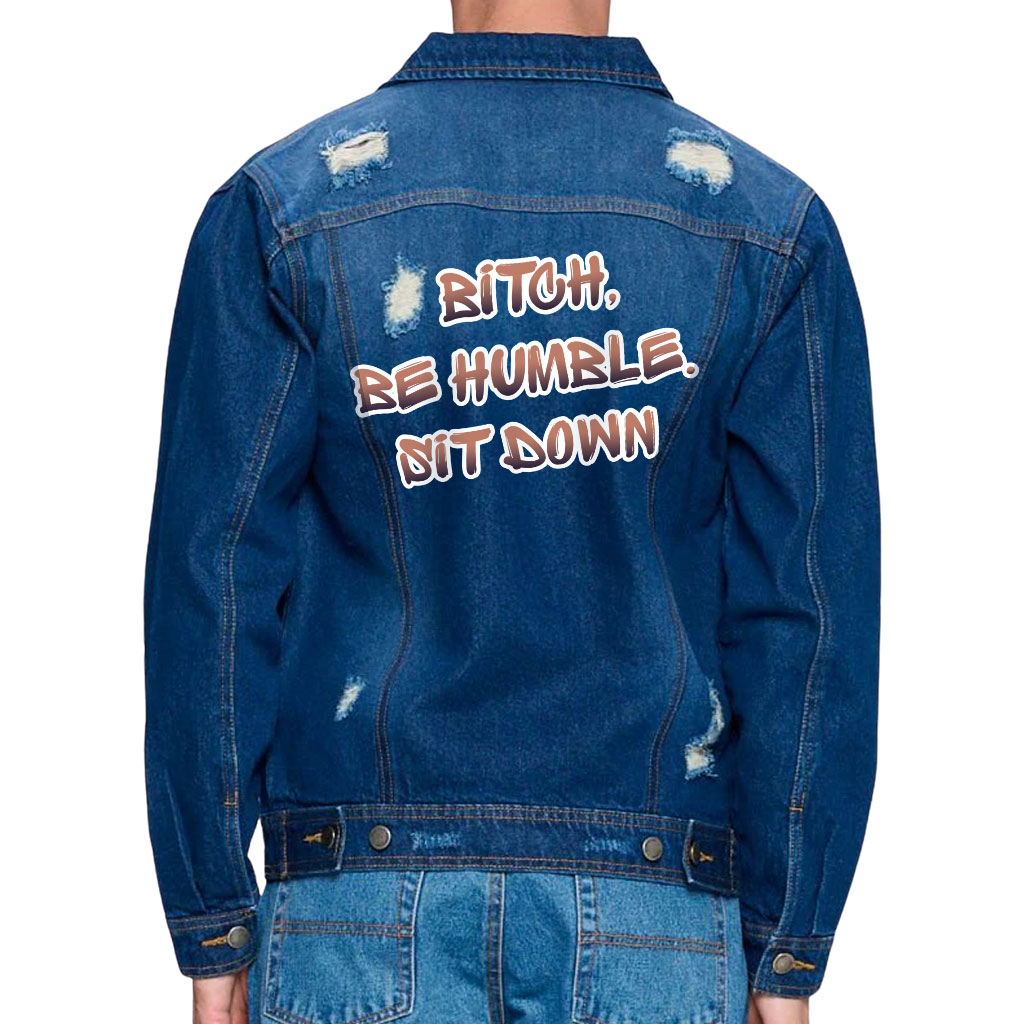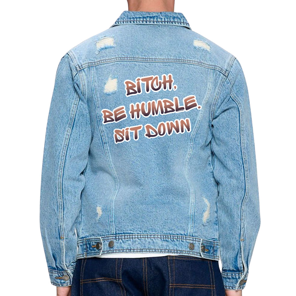 Be Humble Sit Down Men’s Distressed Denim Jacket – Cool Saying Denim Jacket for Men – Graphic Denim Jacket