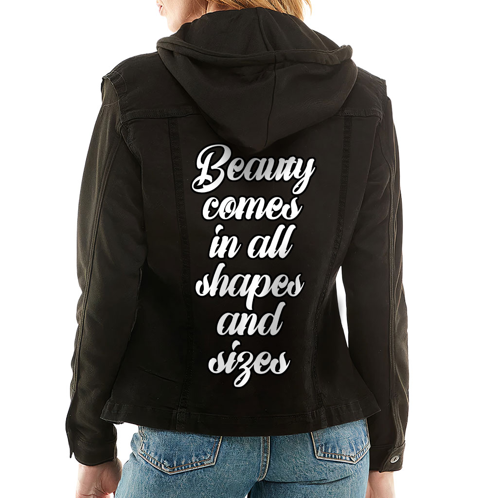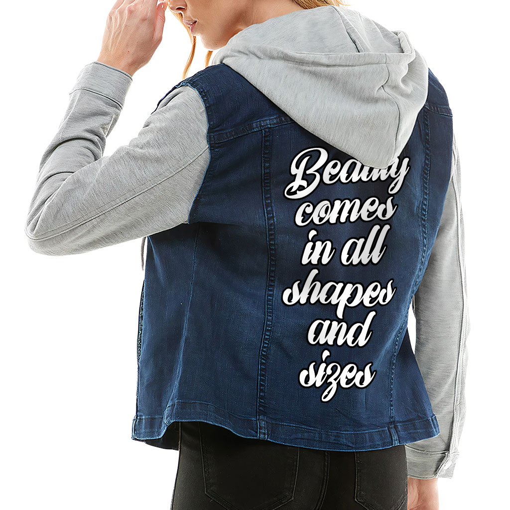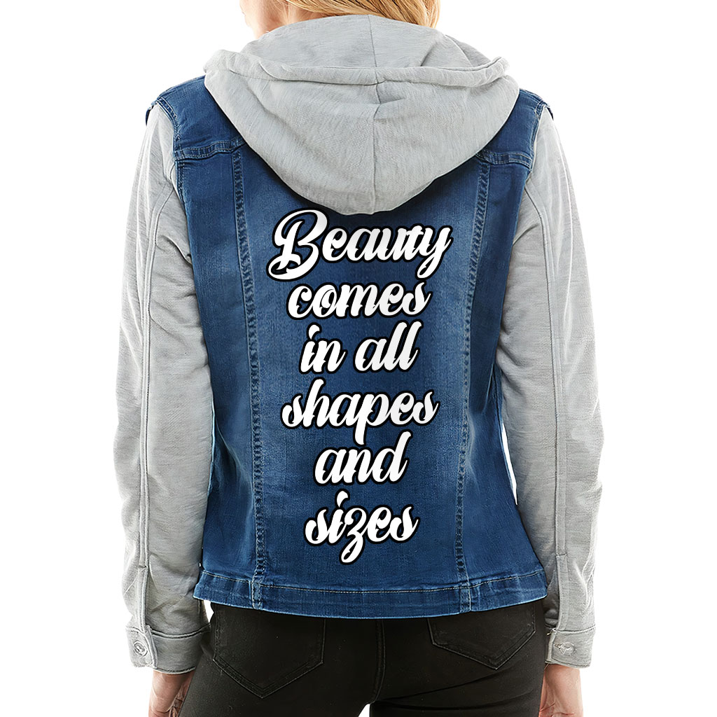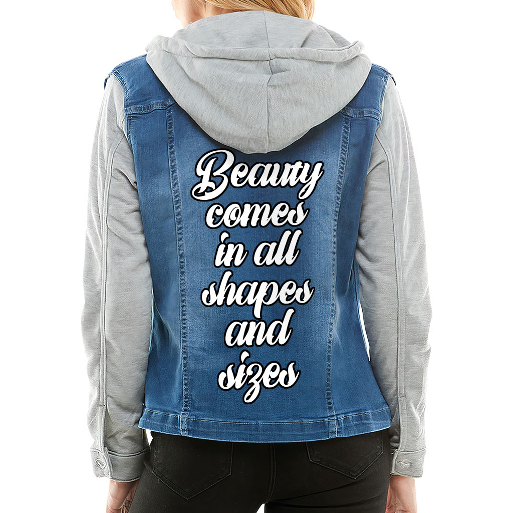 Beauty Comes in All Shapes and Sizes Ladies Denim Jacket with Fleece Hoodie