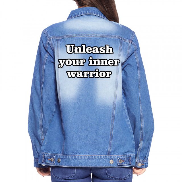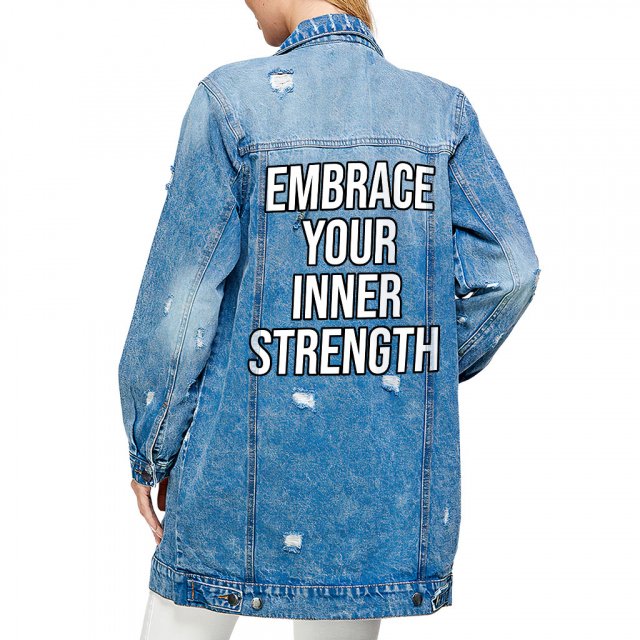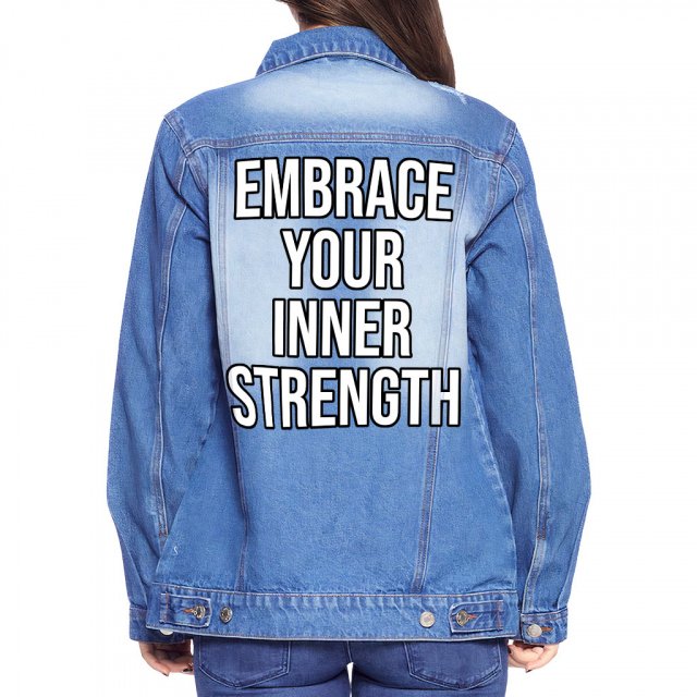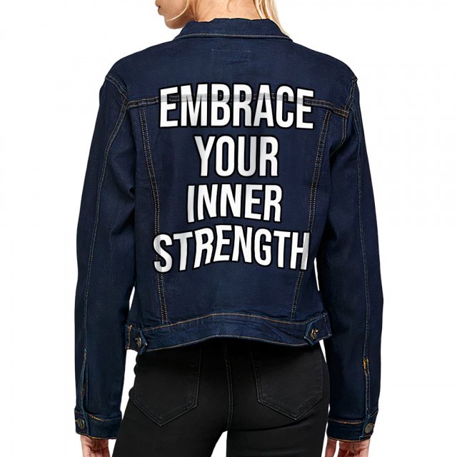 Inner Strength Women’s Denim Jacket – Inspirational Ladies Denim Jacket – Cool Printed Denim Jacket