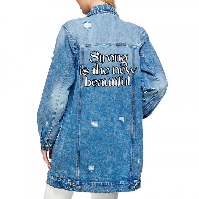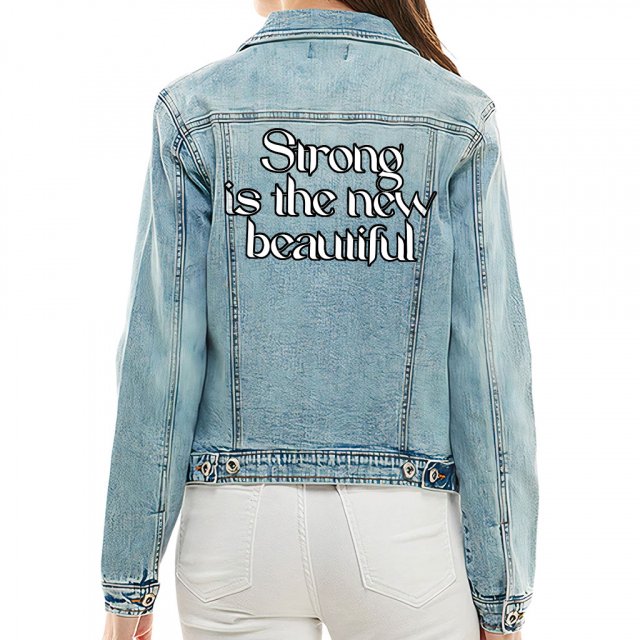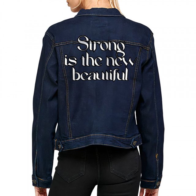 Strong Is the New Beautiful Ladies Casual Denim Jacket – Trendy Women’s Denim Jacket – Cool Printed Denim Jacket