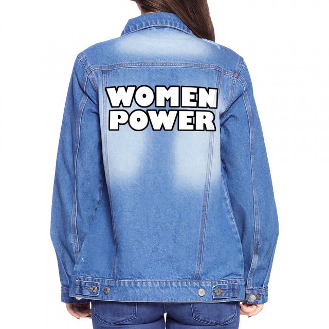 Women Power Ladies Casual Denim Jacket – Cool Saying Women’s Denim Jacket – Graphic Denim Jacket