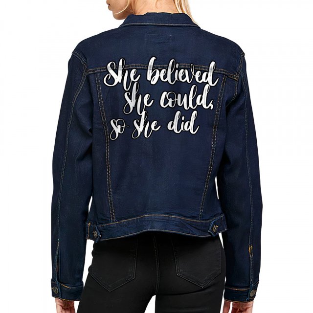 She Believed She Could So She Did Ladies Casual Denim Jacket – Cute Women’s Denim Jacket – Printed Denim Jacket