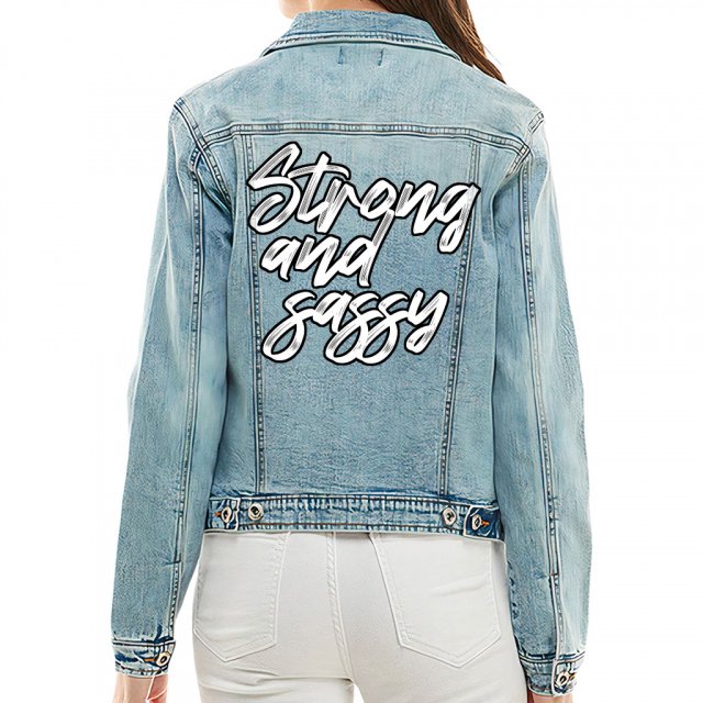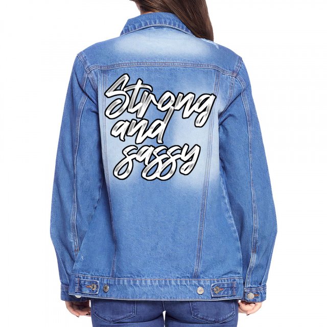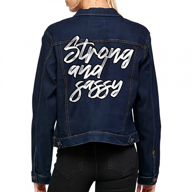 Strong and Sassy Women’s Denim Jacket – Cool Trendy Ladies Denim Jacket – Printed Denim Jacket