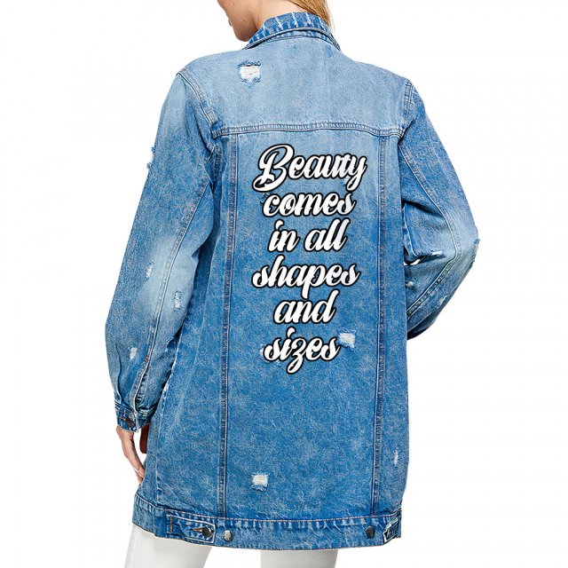 Beauty Comes in All Shapes and Sizes Ladies Casual Denim Jacket – Best Quote Women’s Denim Jacket – Themed Denim Jacket