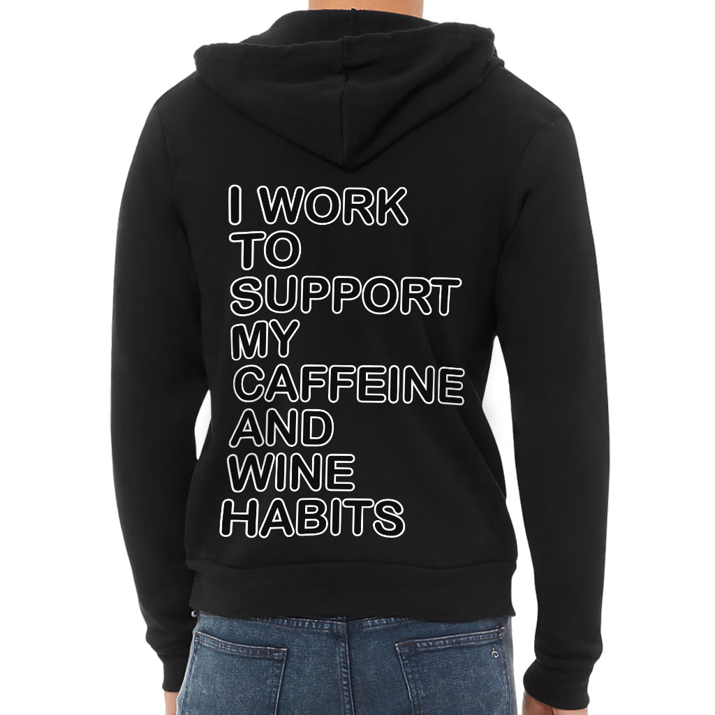 Coffee and Wine Full-Zip Hoodie – Best Quote Hooded Sweatshirt – Themed Hoodie