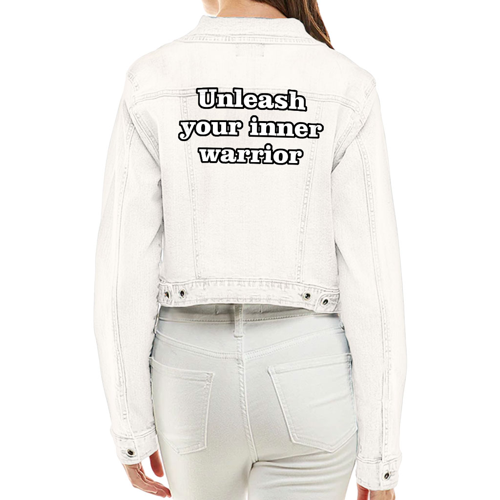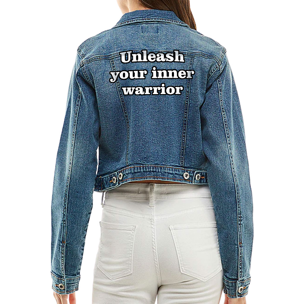 Motivational Women’s Denim Jacket turns even the plainest clothing into a look that’s cute and bangs on trend. To complete the picture, the jacket comes with metal detailing.