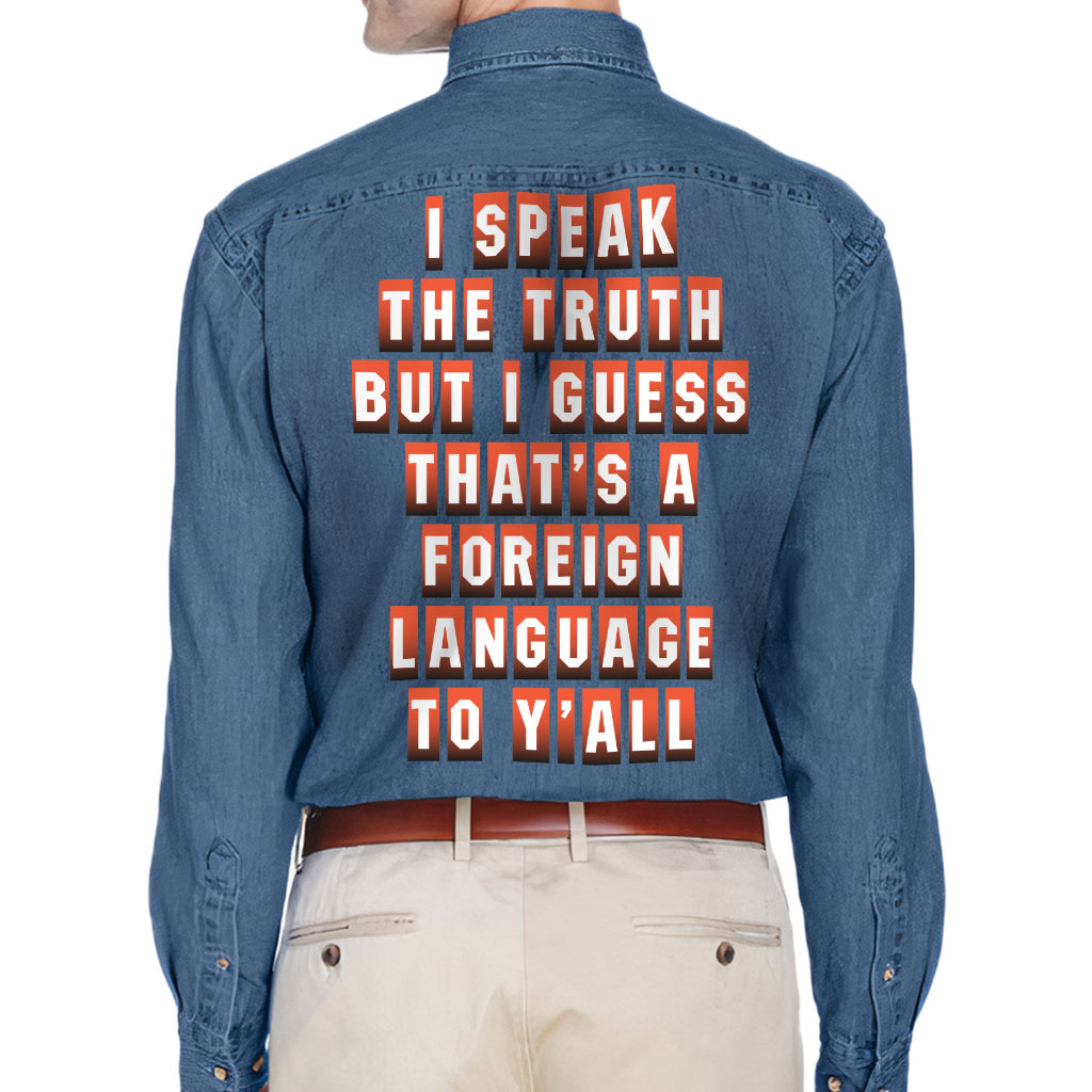 Cool Saying Men’s Denim Shirt perfectly emphasizes your style. Minimalistic and sophisticated at the same time, this shirt will become your must-have and a favorite shirt in the wardrobe.