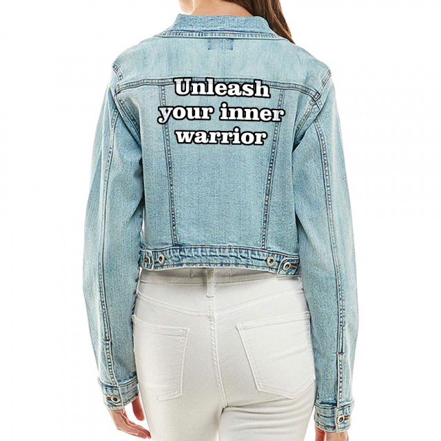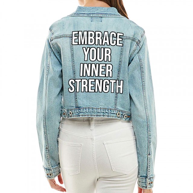 Inner Strength Cropped Ladies Denim Jacket – Inspirational Women’s Denim Jacket – Cool Printed Denim Jacket