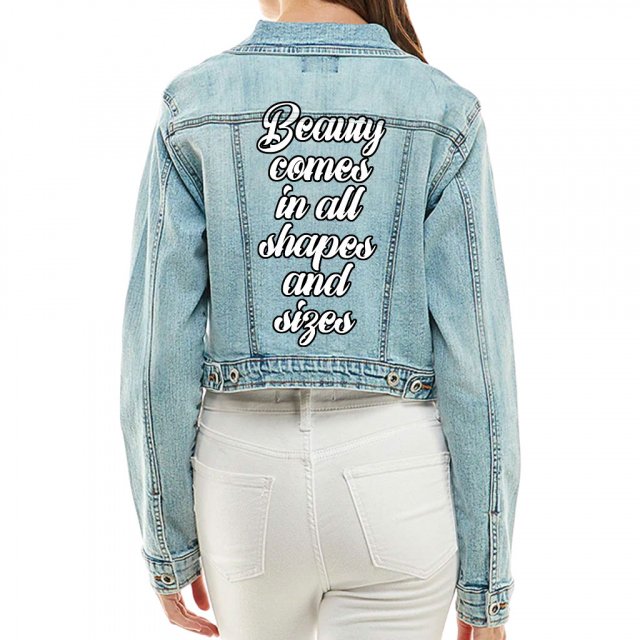 Beauty Comes in All Shapes and Sizes Cropped Ladies Denim Jacket – Best Quote Women’s Denim Jacket – Themed Denim Jacket