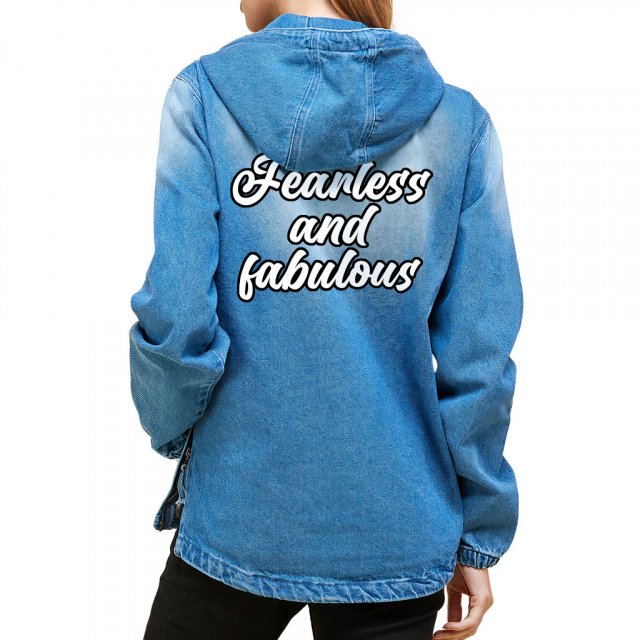 Fearless Women’s Denim Jacket with Hoodie – Cool Ladies Denim Jacket – Best Design Denim Jacket
