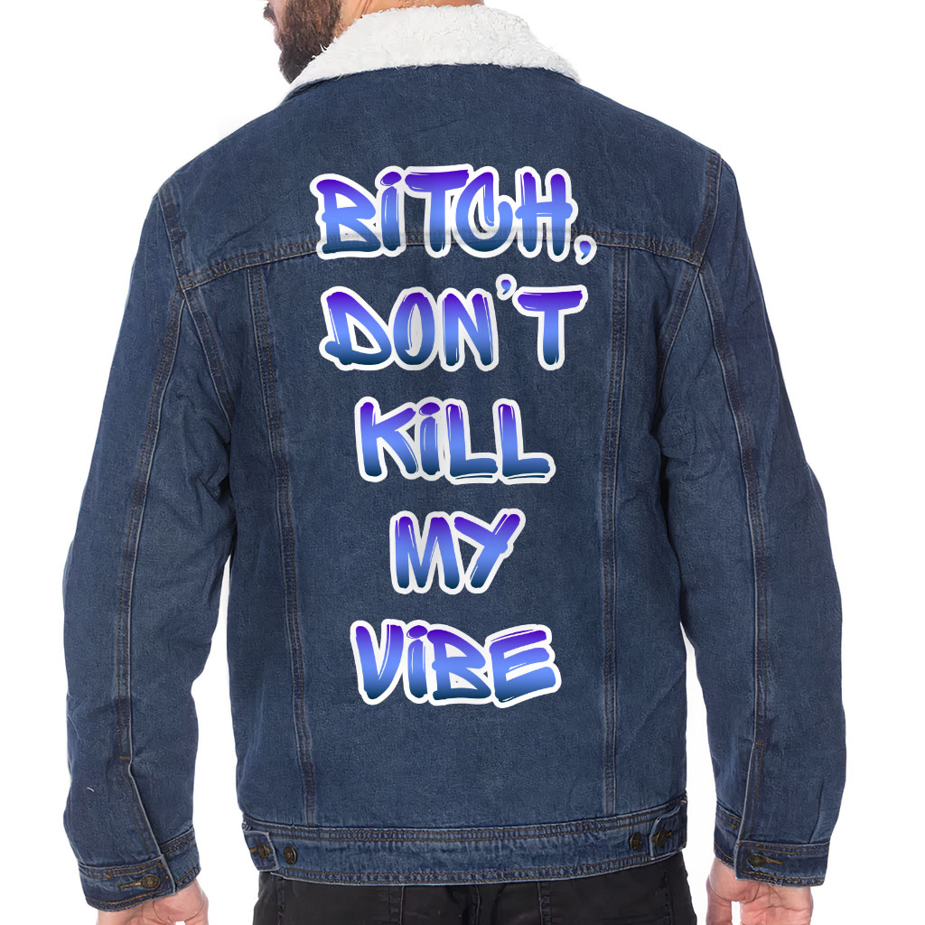 Don’t Kill My Vibe Men’s Sherpa-Lined Denim Jacket