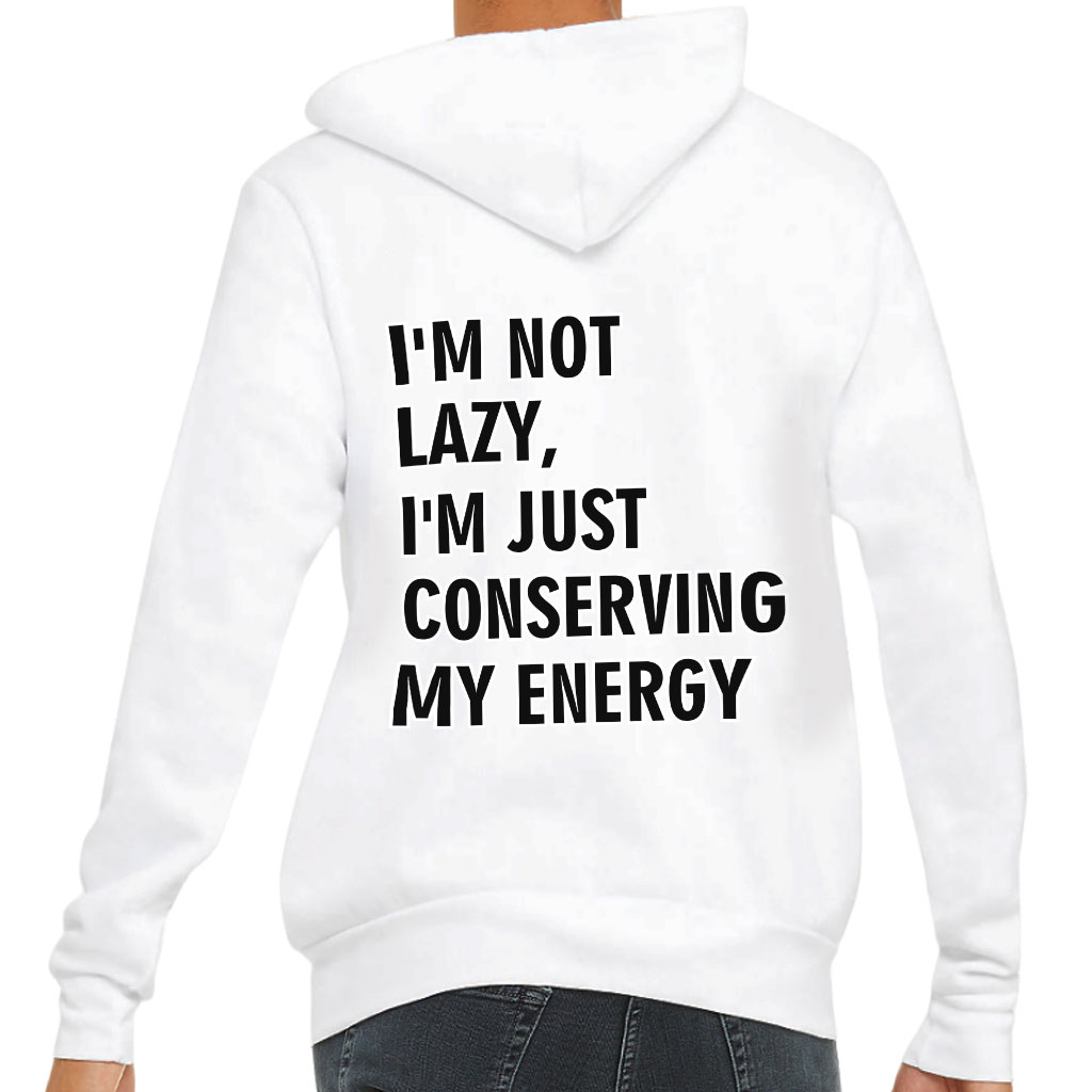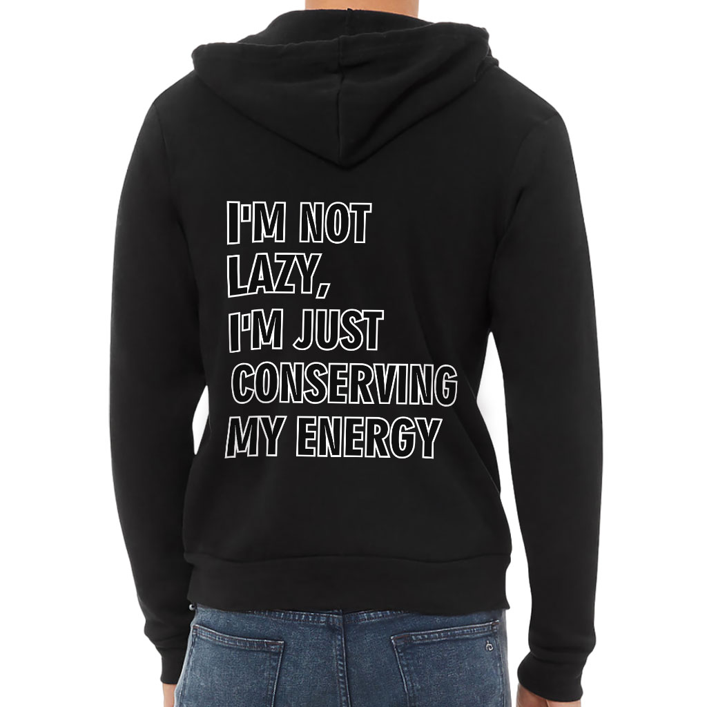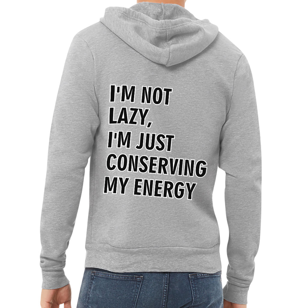 An incredibly soft and relaxed I Am Not Lazy Full-Zip Hoodie, spun from a plush poly-cotton blend, will quickly become a go-to essential. Features a comfortable fit, hood with white drawstrings, full zip closure, ribbed cuffs, and waistband.