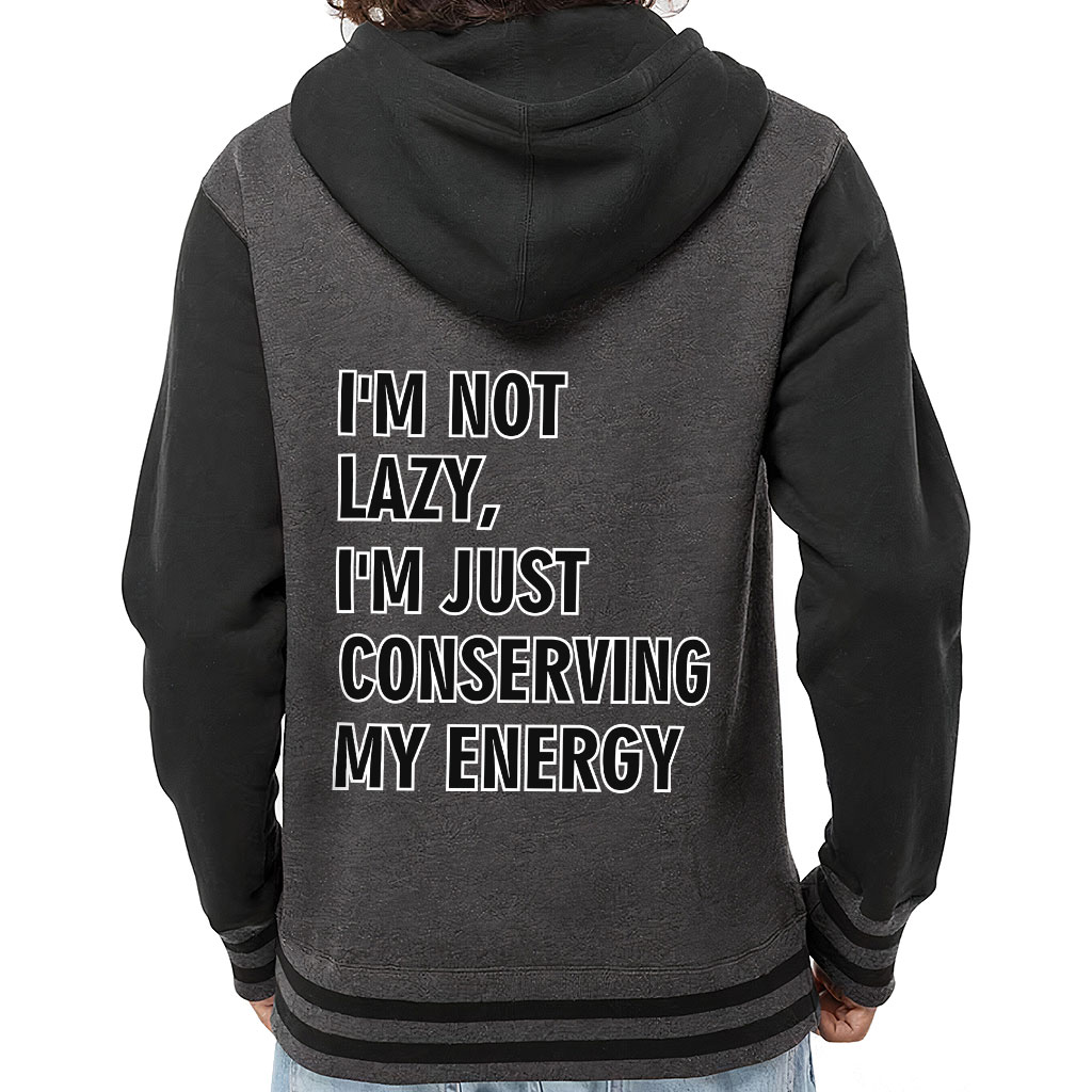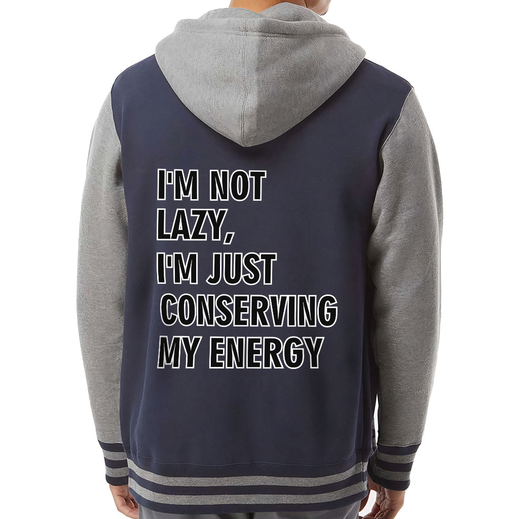 An essential closet staple, I Am Not Lazy Varsity Hoodie is a go-to classic for hiking, training, or just kicking back. Pair it with your favorite shorts, athletic pants, jeans, or any pants you like.