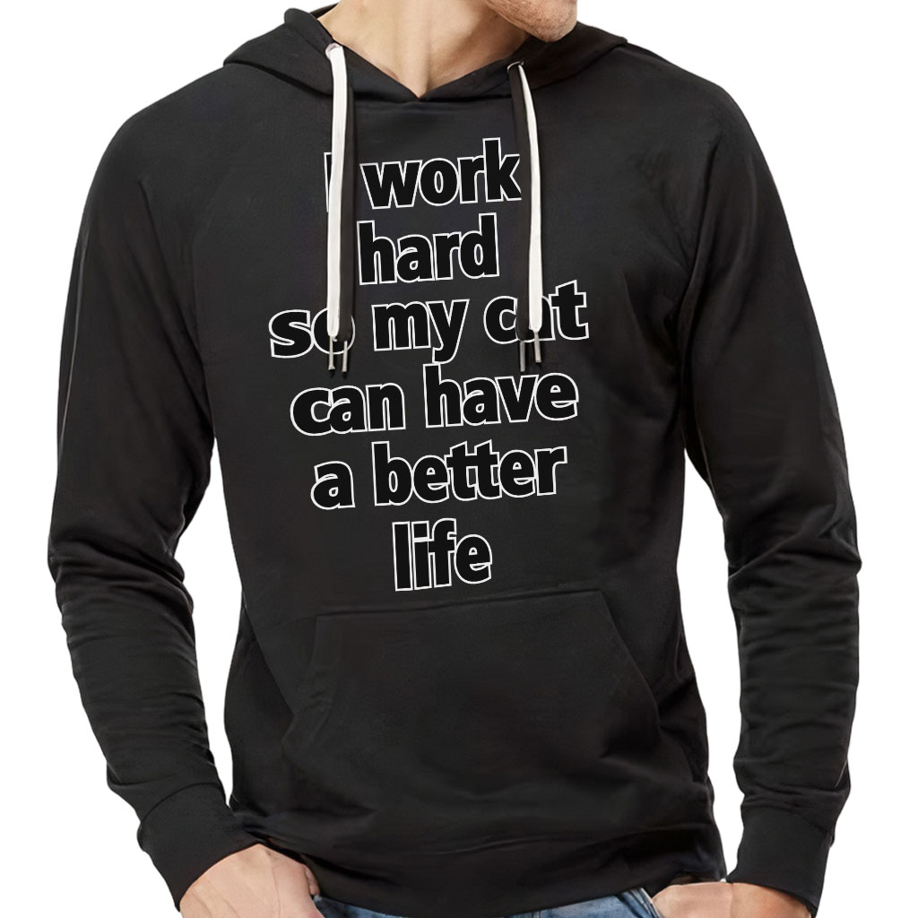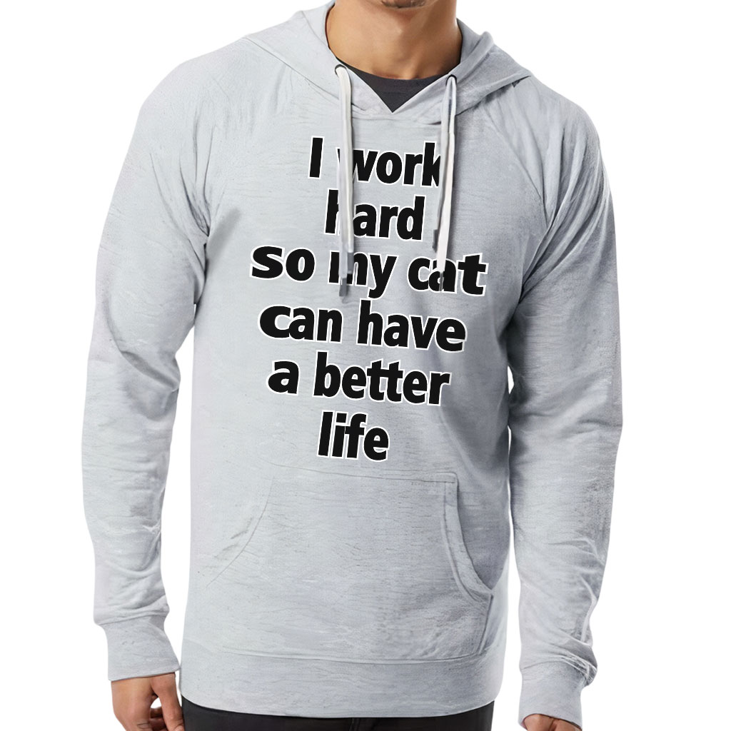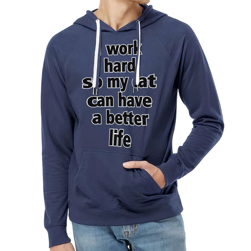 I Work Hard So My Cat Lightweight Hoodie is extra soft. All fabrics are given a special softness in a 6-step process that you will immediately fall in love with. The result is not only a great product for outdoor use, but also for relaxing at home.