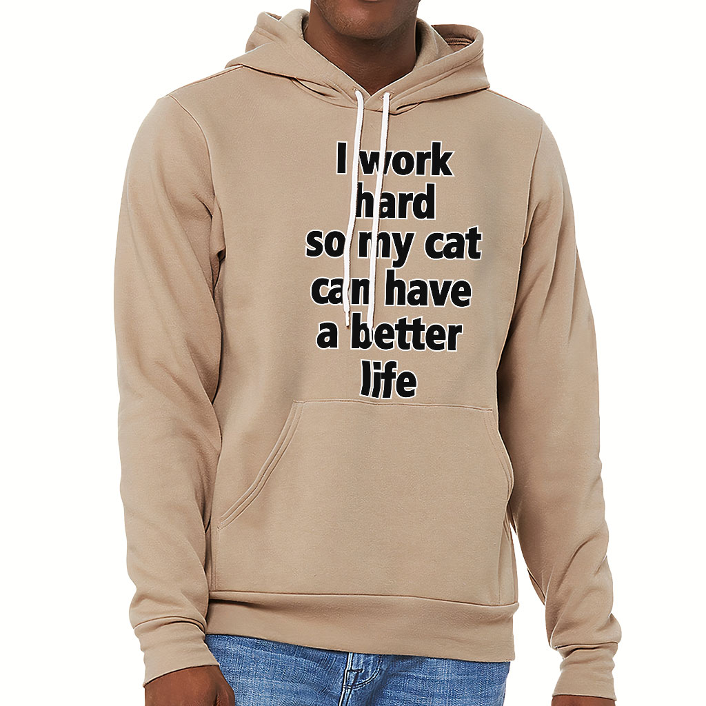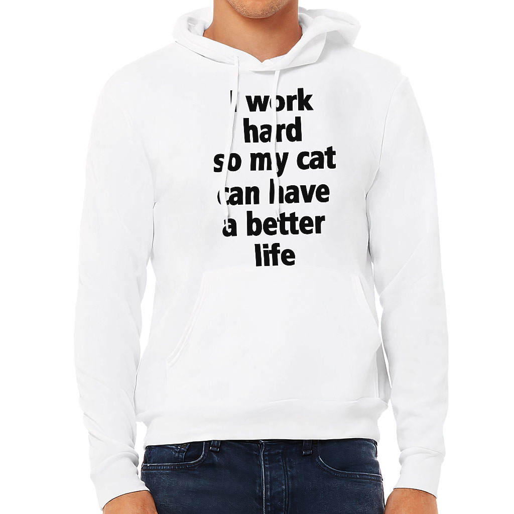 I Work Hard So My Cat Sponge Fleece Hoodie – Funny Design Hoodie – Cool Trendy Hooded Sweatshirt