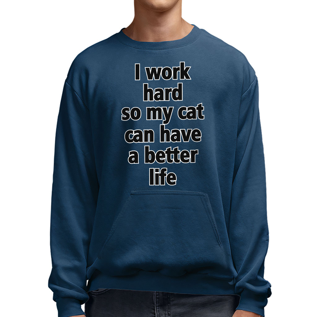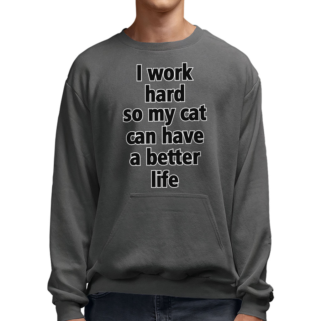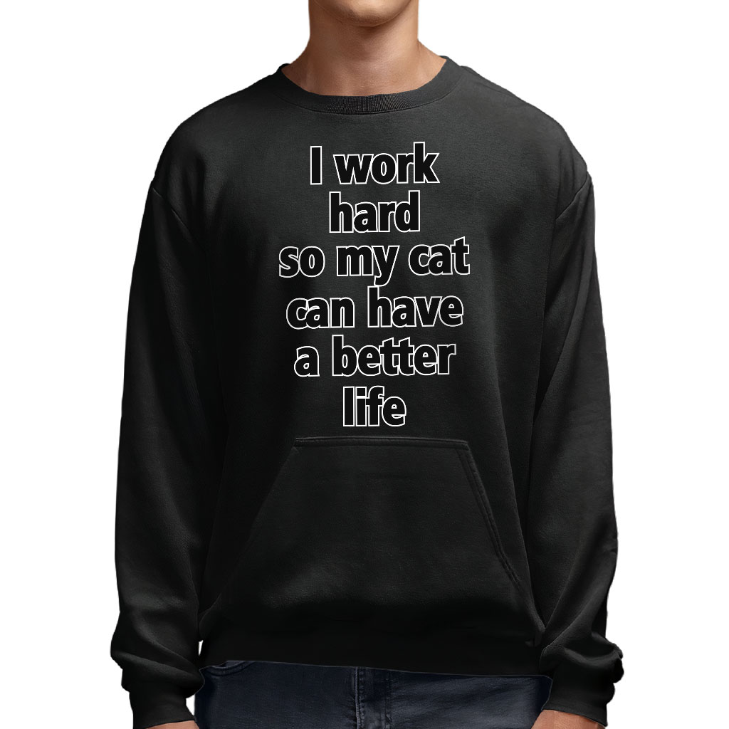 The casual fashion hoodie is made of high-quality cotton and polyester, the fabric is soft and comfortable. Comfortable and versatile, I Work Hard So My Cat Sweatshirt with Pocket is perfect on its own or as a layer under a jacket.