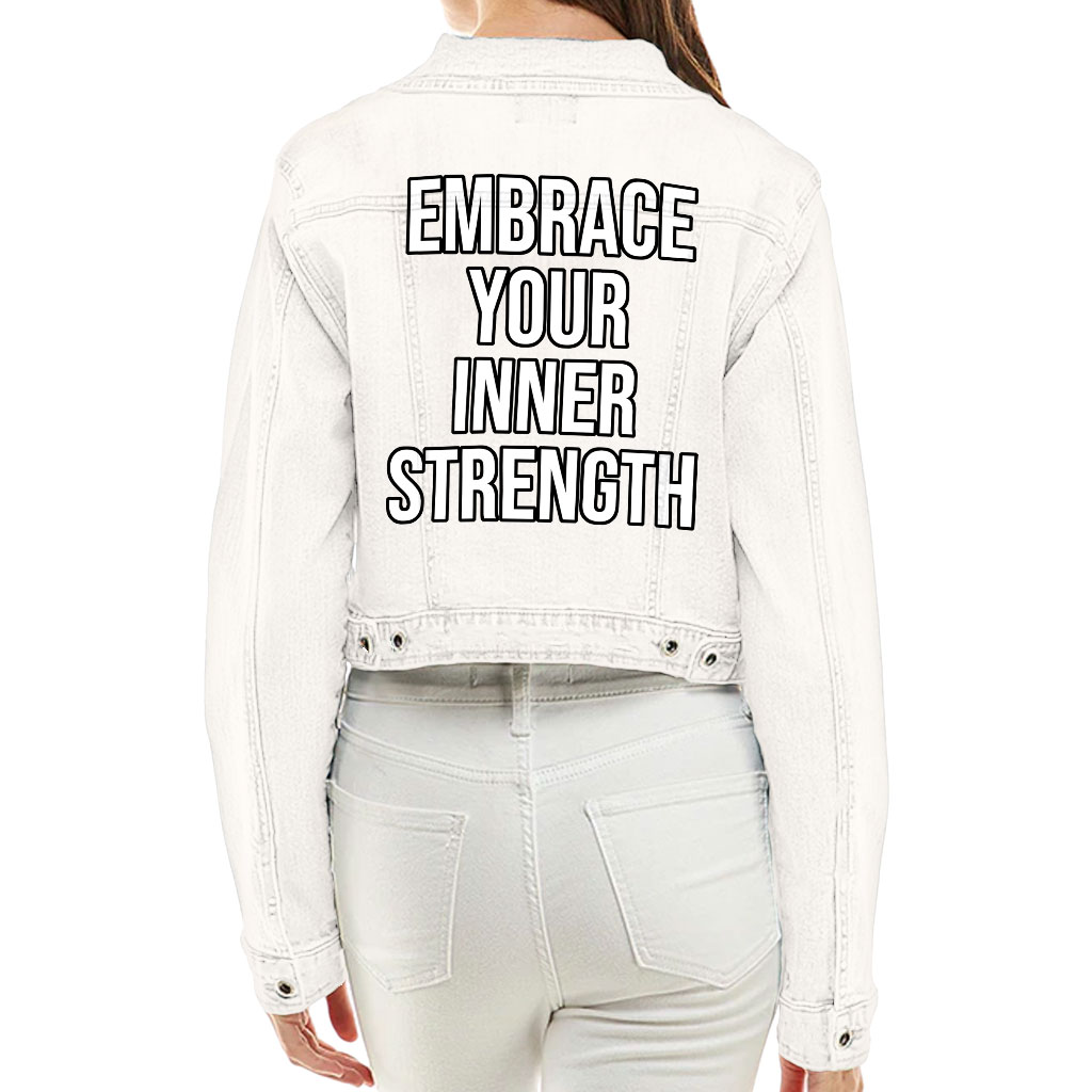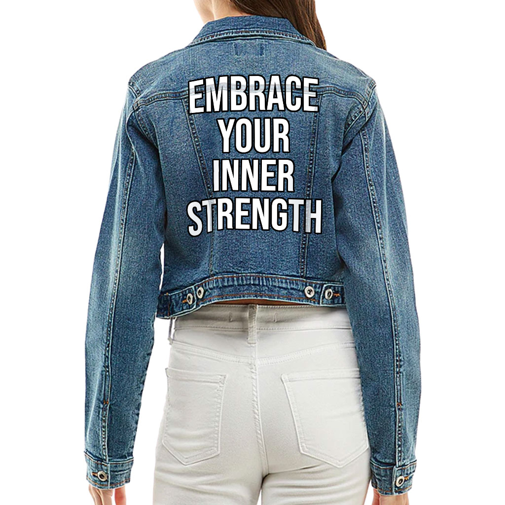 We craft our designs with intention, upholding strict ethical standards, so you can feel proud wearing Inner Strength Cropped Ladies Denim Jacket. It will be a great gift for daily wear, holiday, photograph, outdoors, camping, hiking, travel, and fishing with family.