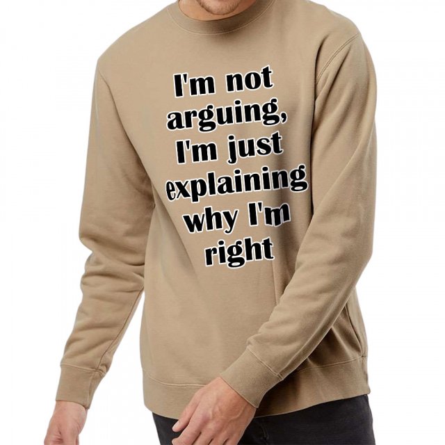 I’m Not Arguing I’m Just Explaining Why I’m Right Midweight Sweatshirt – Funny Crewneck Sweatshirt – Cool Sweatshirt