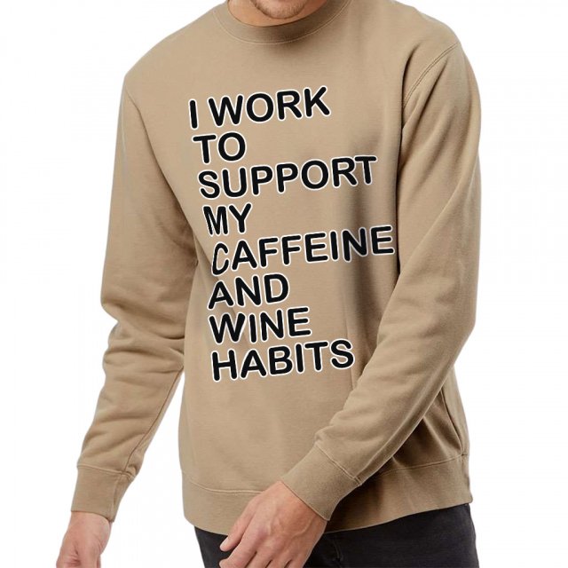 Coffee and Wine Midweight Sweatshirt – Best Quote Crewneck Sweatshirt – Themed Sweatshirt