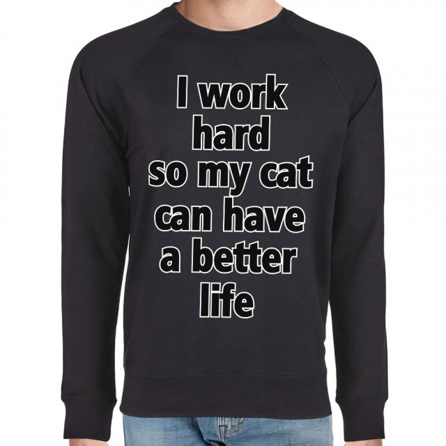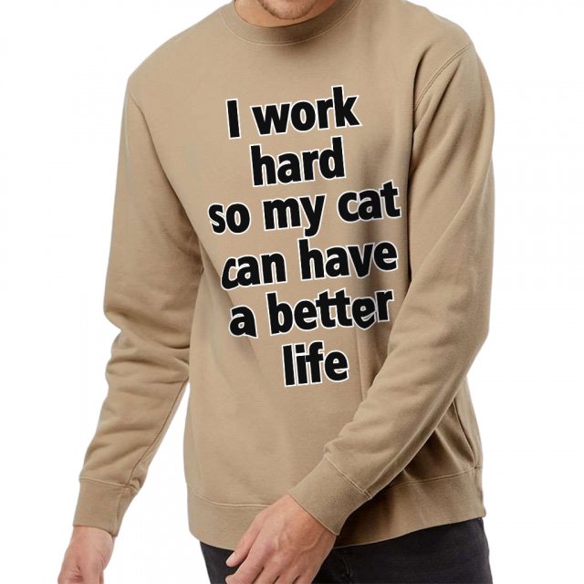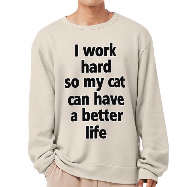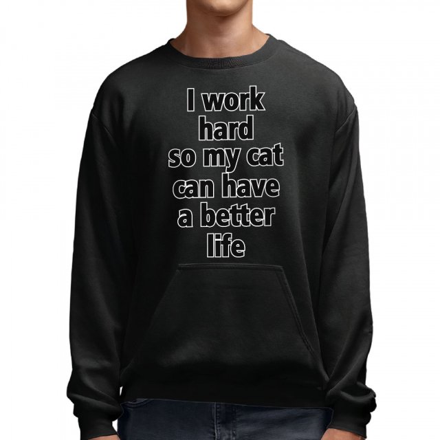 I Work Hard So My Cat Midweight Sweatshirt – Funny Design Crewneck Sweatshirt – Cool Trendy Sweatshirt