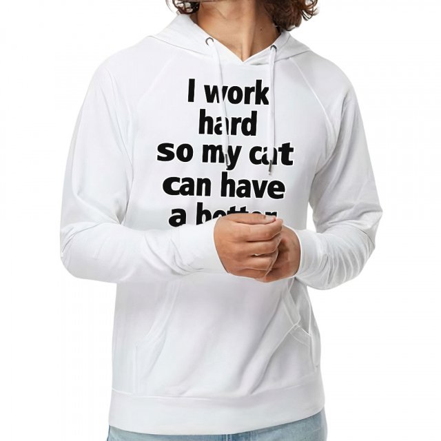 I Work Hard So My Cat Lightweight Hoodie – Funny Design Hooded Sweatshirt – Cool Trendy Hoodie