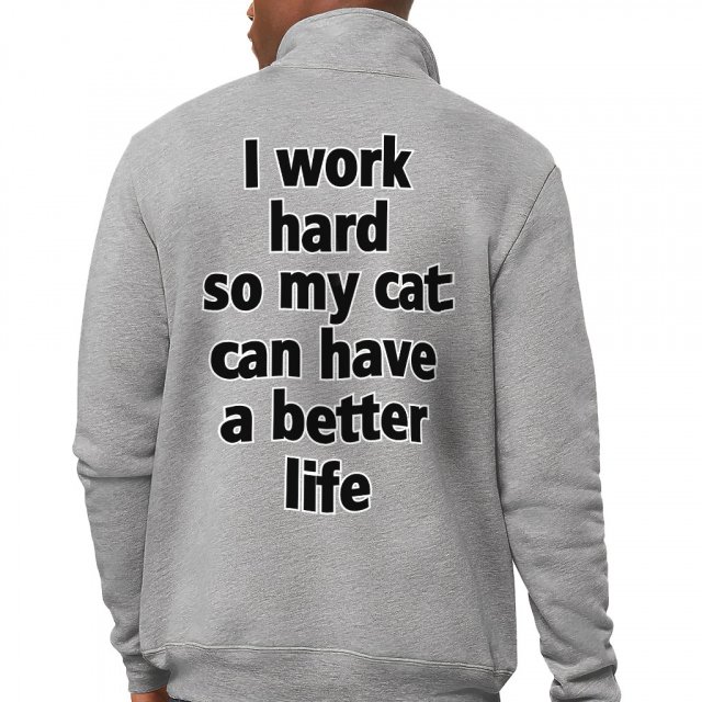 I Work Hard So My Cat Zip Pullover – Funny Design Fleece Pullover – Cool Trendy Pullover