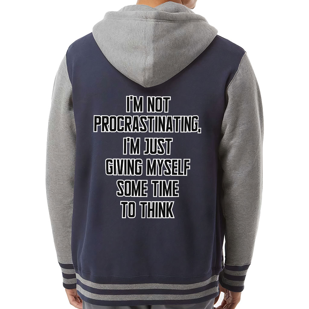 An essential closet staple, Procrastinating Varsity Hoodie is a go-to classic for hiking, training, or just kicking back. Pair it with your favorite shorts, athletic pants, jeans, or any pants you like.