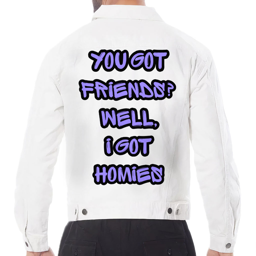 Rap Design Men’s White Denim Jacket – Funny Saying Denim Jacket for Men – Cool Trendy Denim Jacket