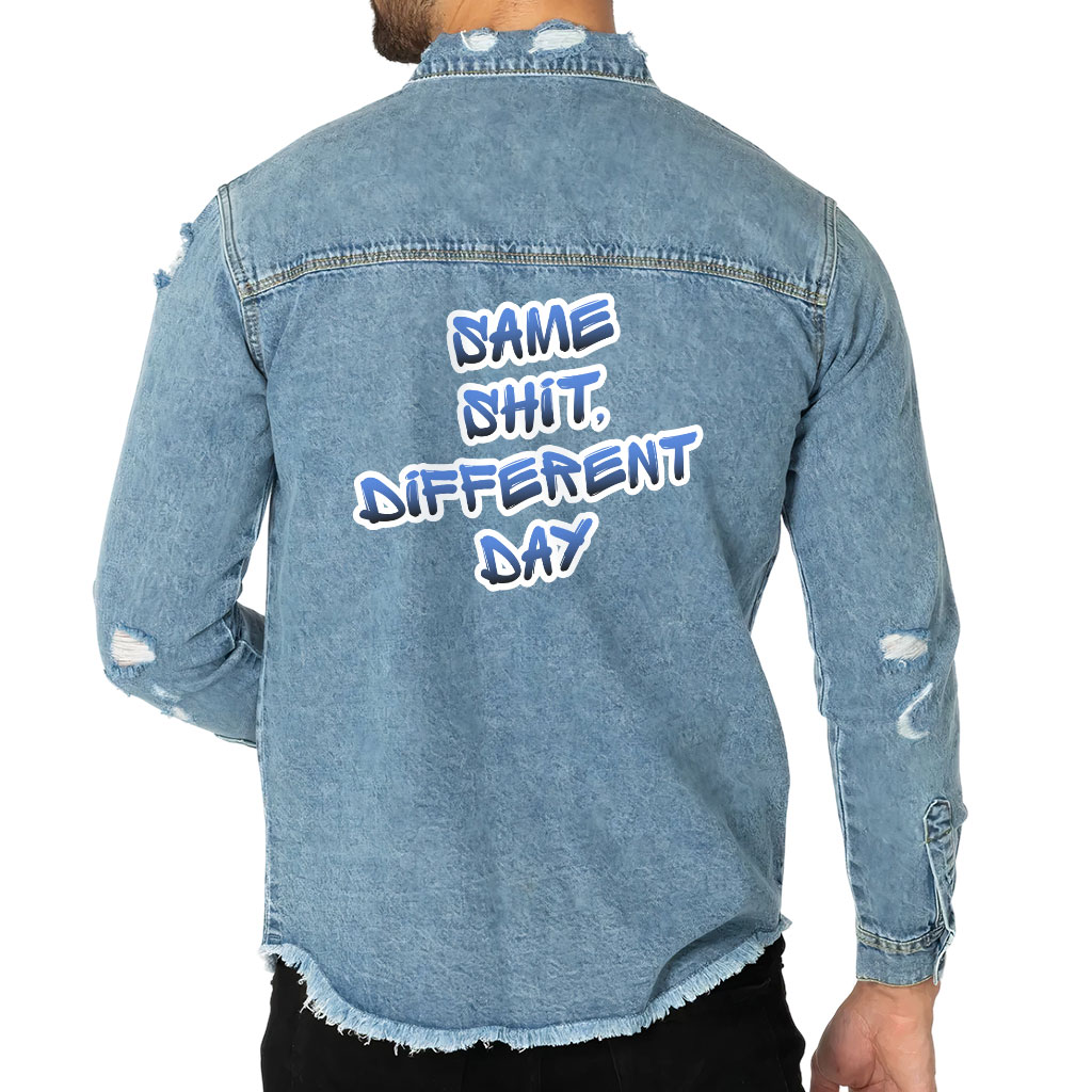 Same Shit Different Day Men’s Denim Shirt with Distressed