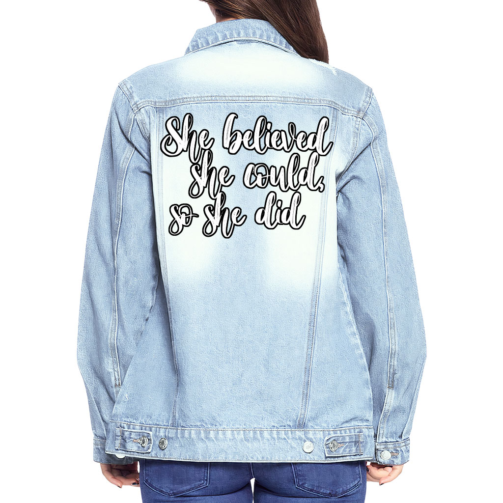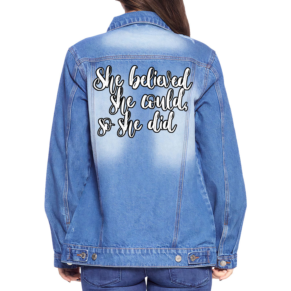 She Believed She Could So She Did Women’s Casual Denim Jacket
