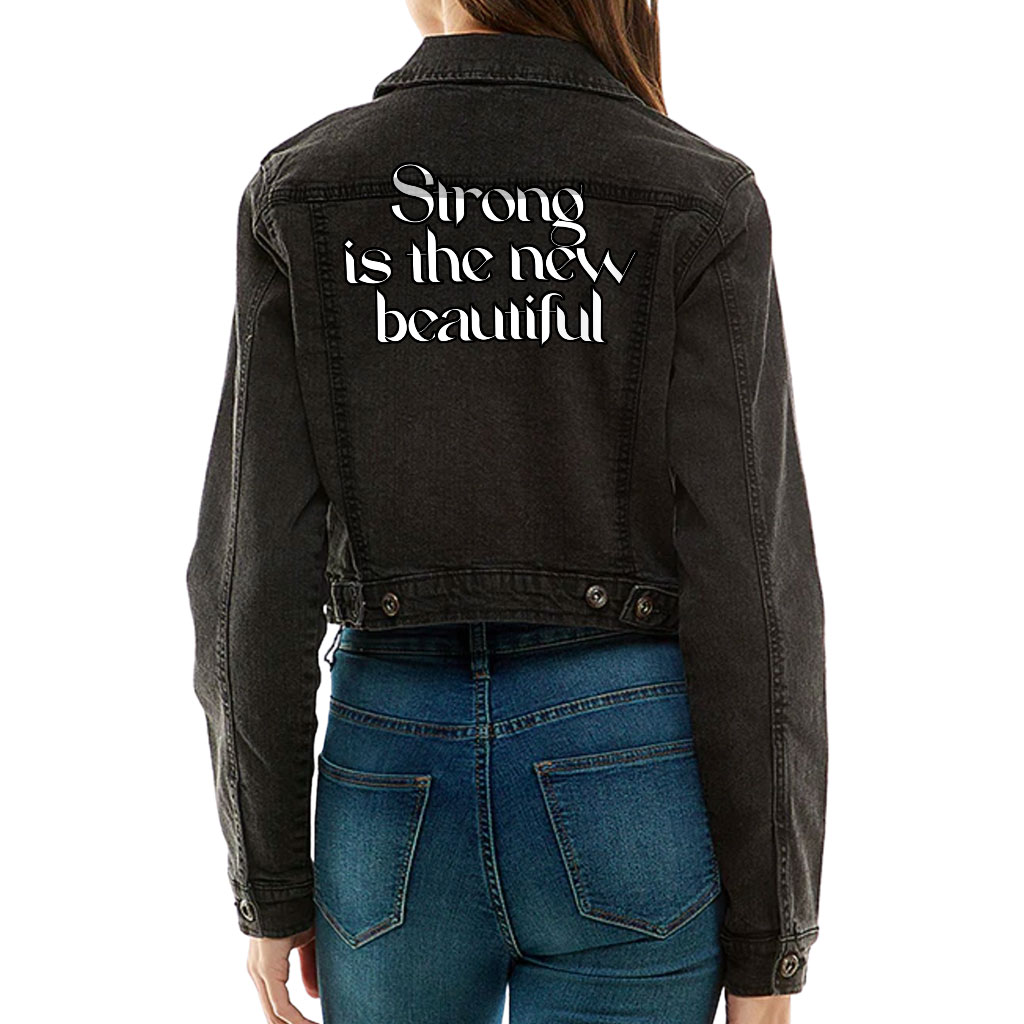 Strong Is the New Beautiful Cropped Ladies Denim Jacket – Trendy Women’s Denim Jacket – Cool Printed Denim Jacket