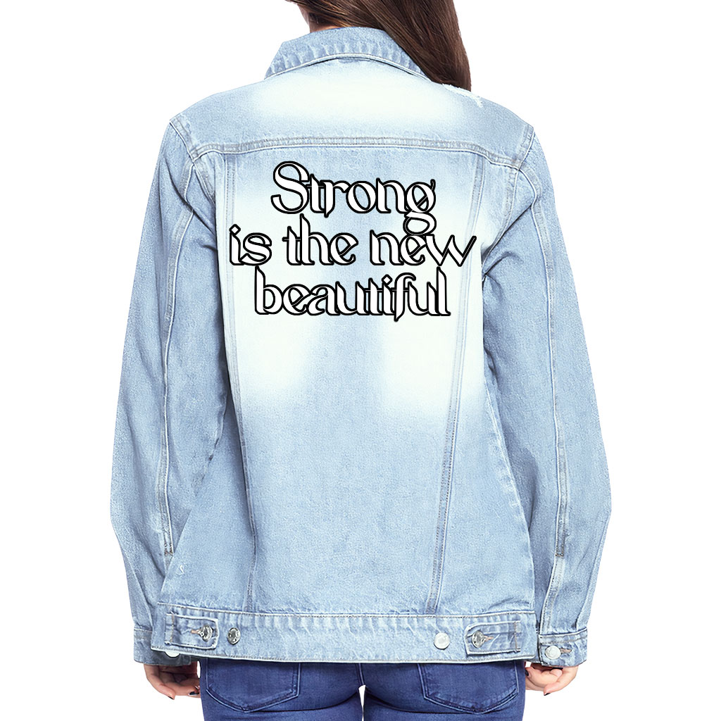 Strong Is the New Beautiful Women’s Casual Denim Jacket – Trendy Ladies Denim Jacket – Cool Printed Denim Jacket