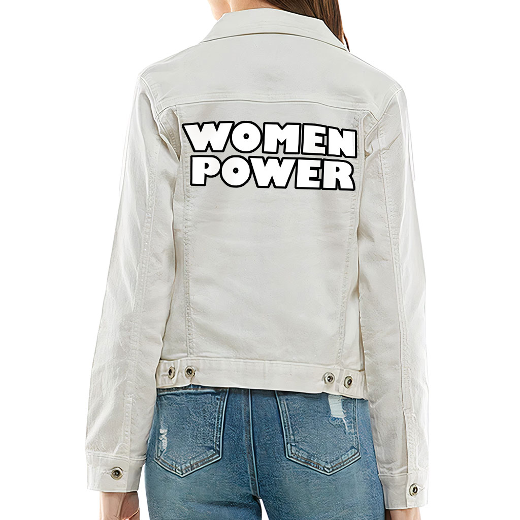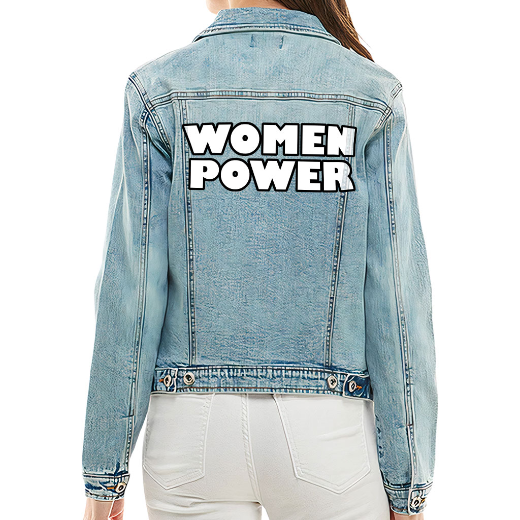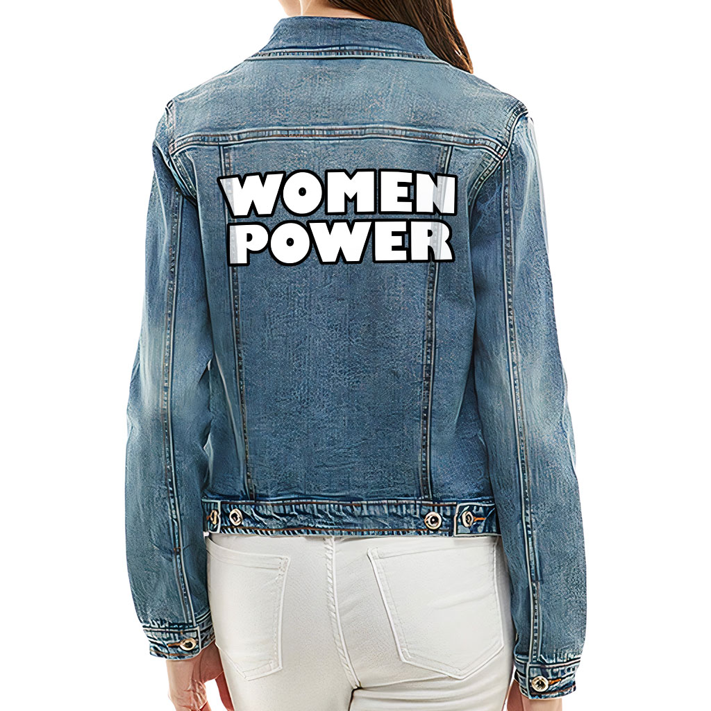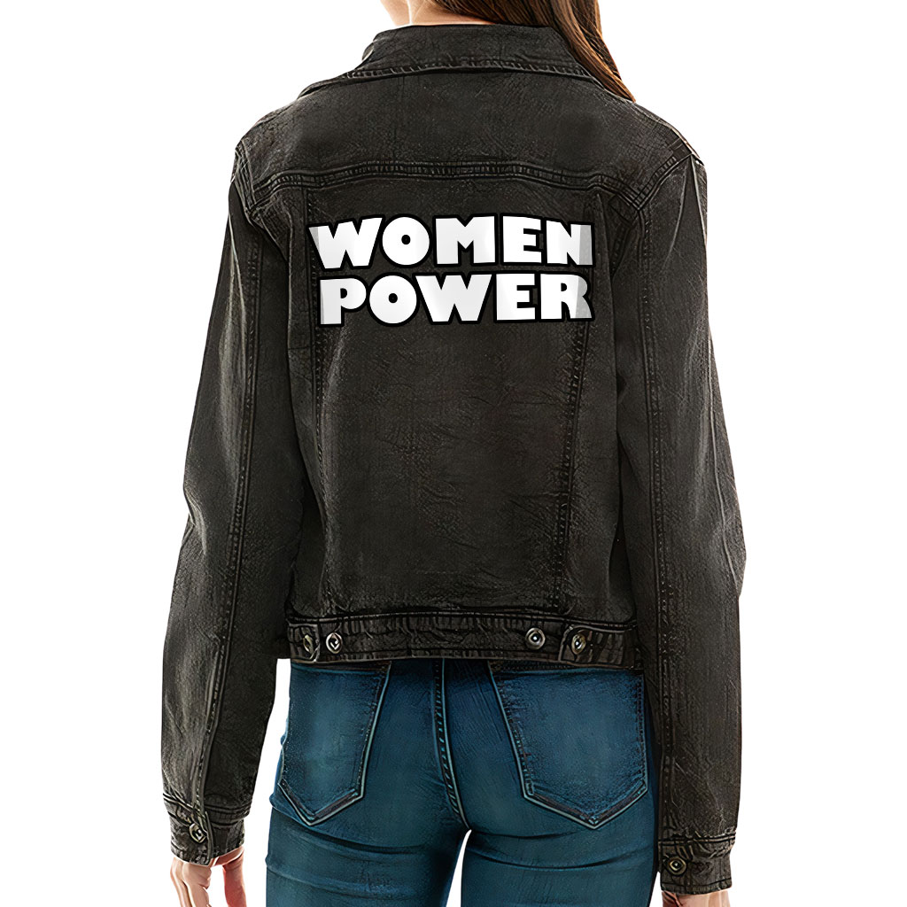 Women Power Ladies Casual Denim Jacket – Cool Saying Women’s Denim Jacket – Graphic Denim Jacket